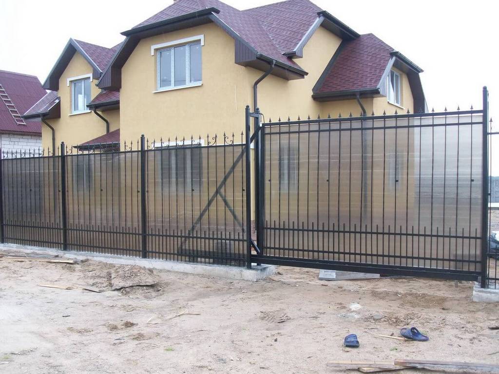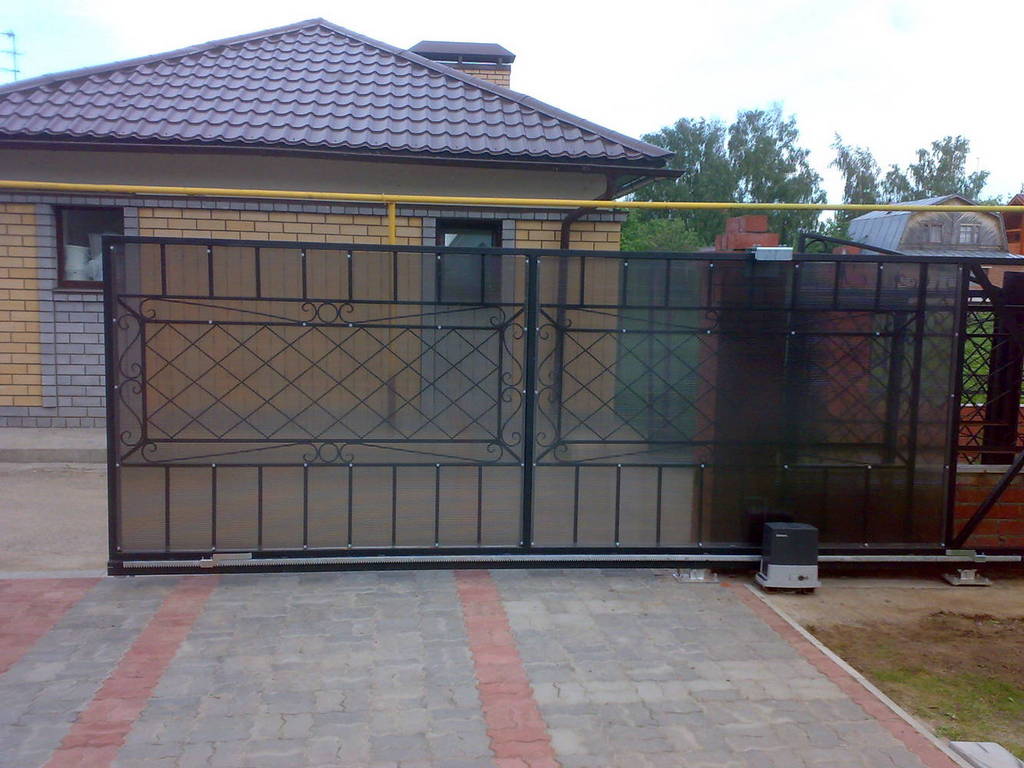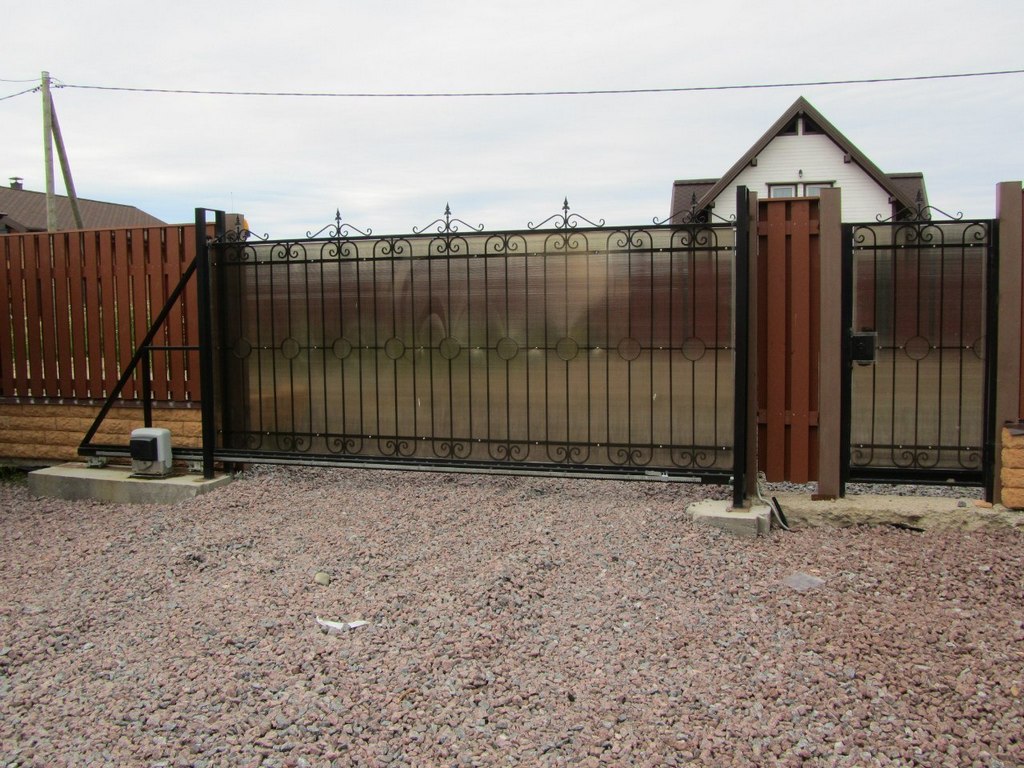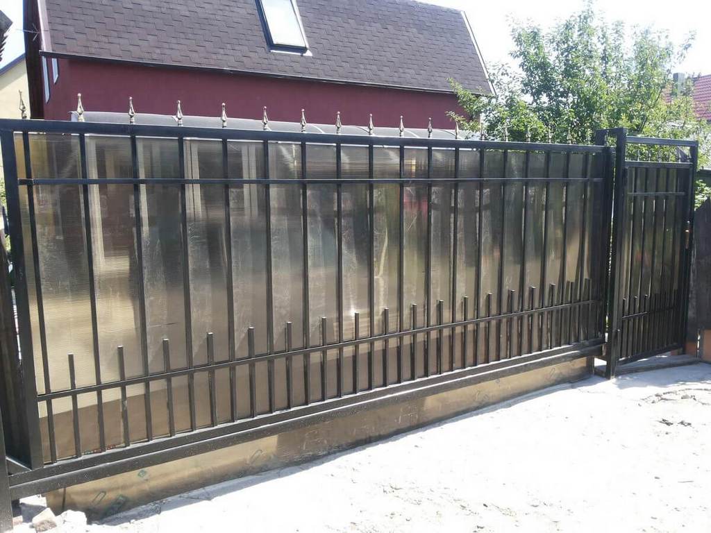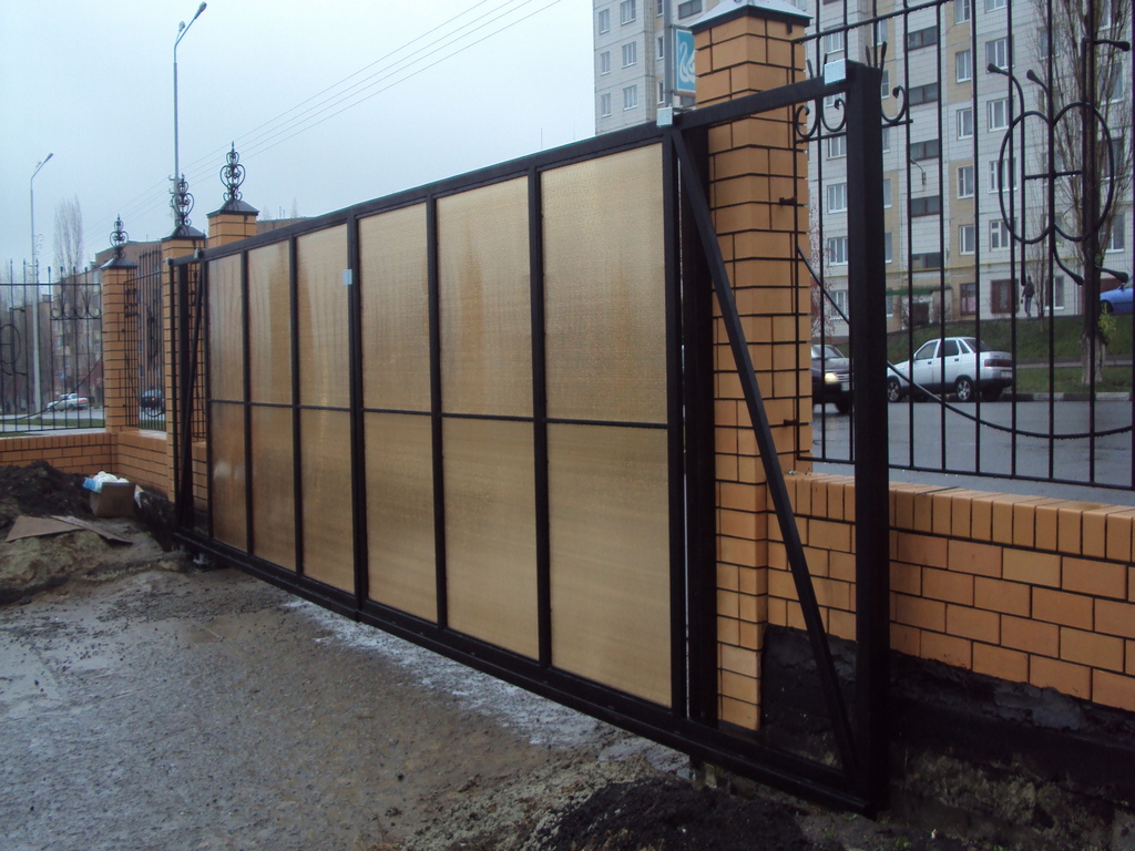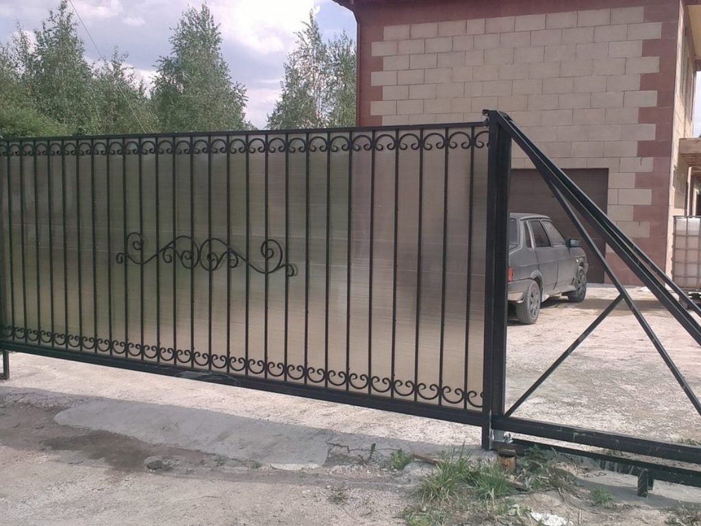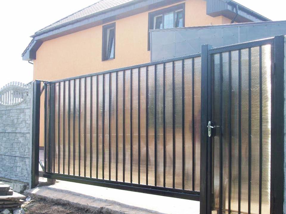 Откатные ворота из поликарбоната пример 1