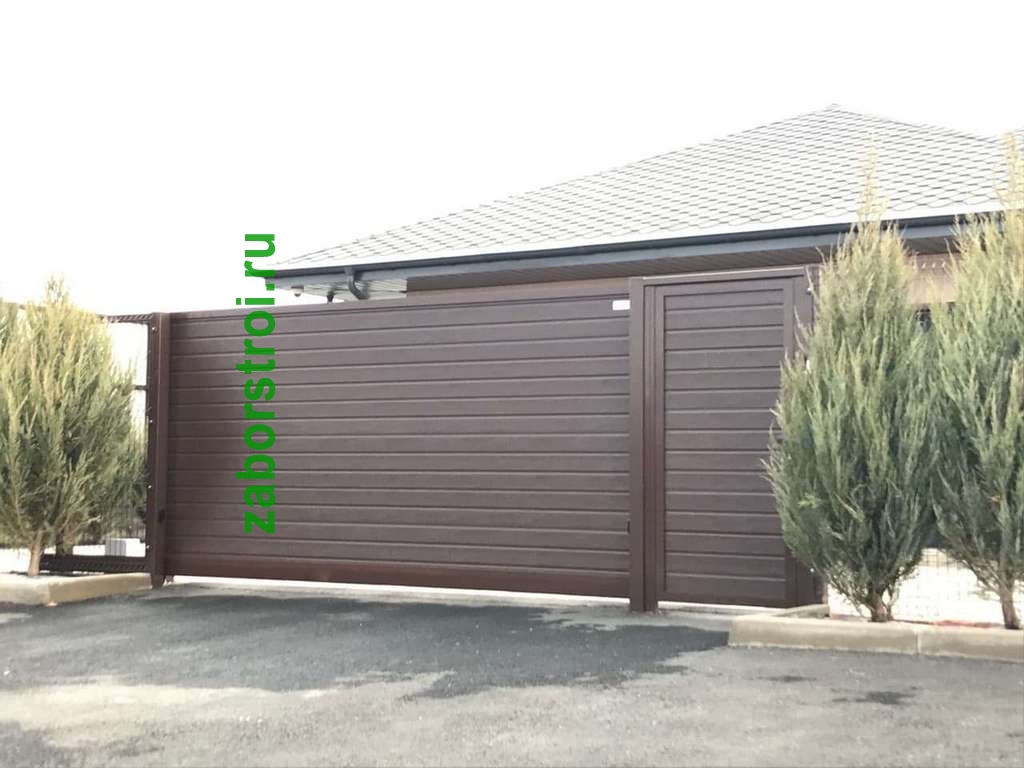 Откатные ворота с калиткой пример 1