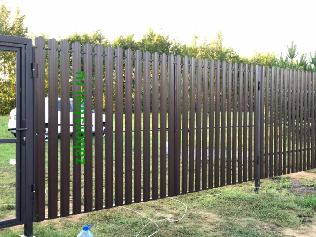 Ворота из евроштакетника распашные пример 13