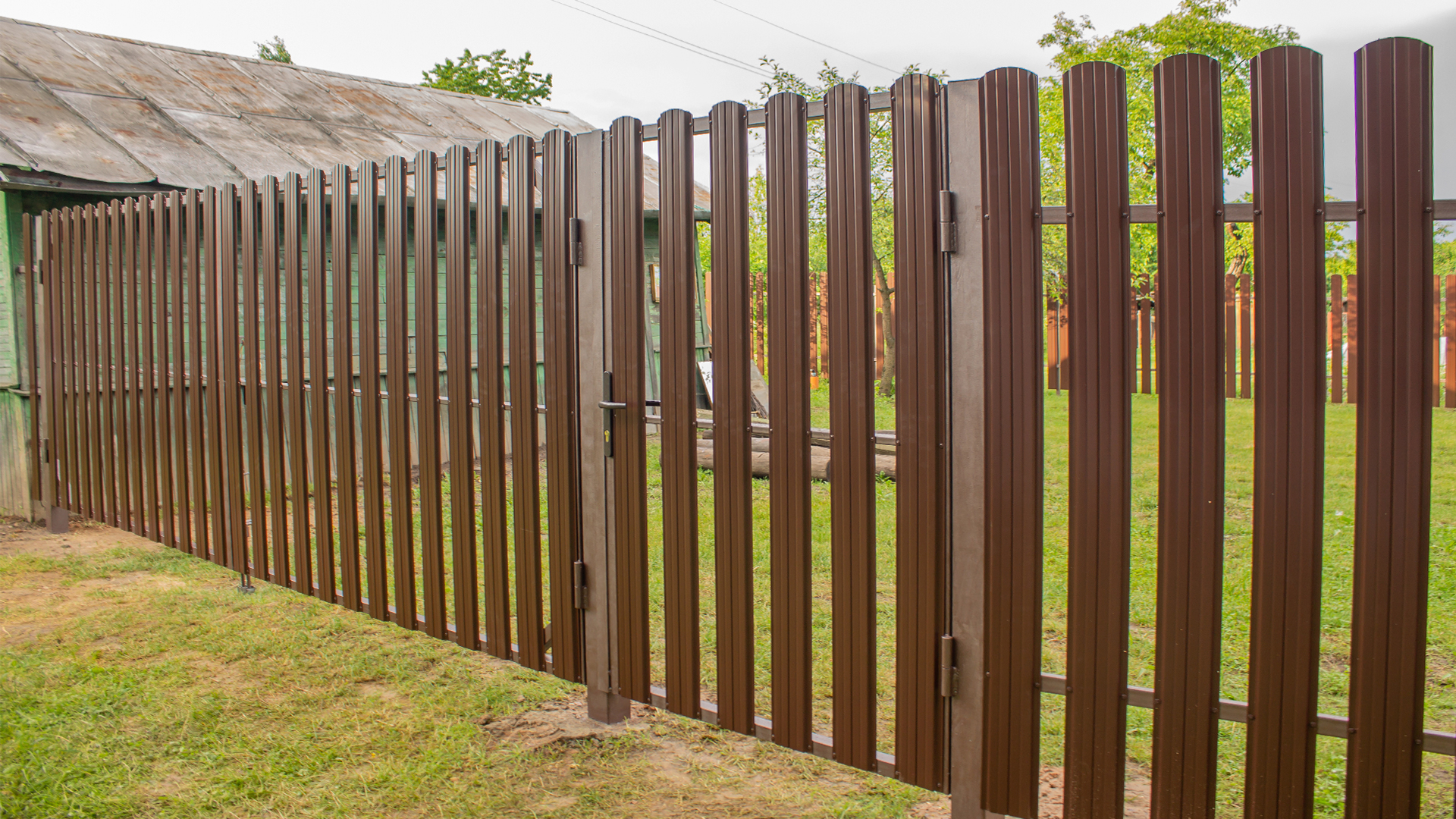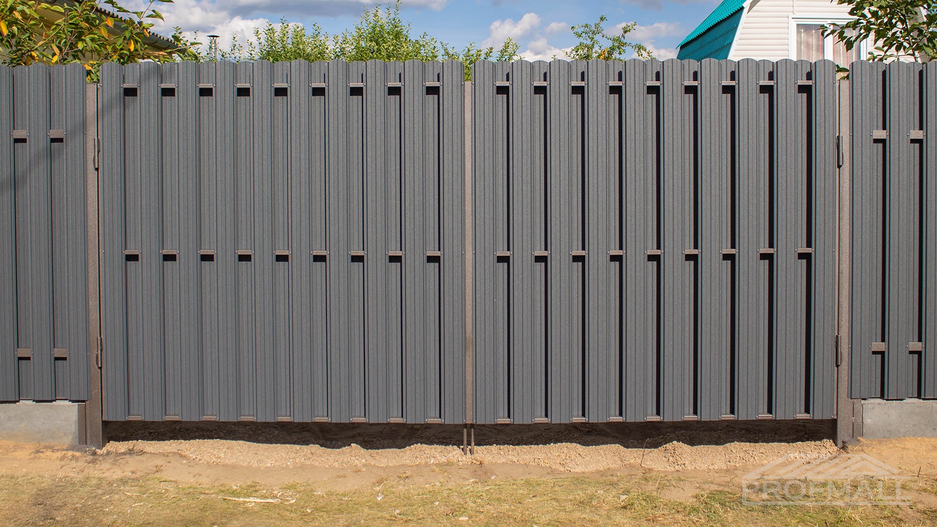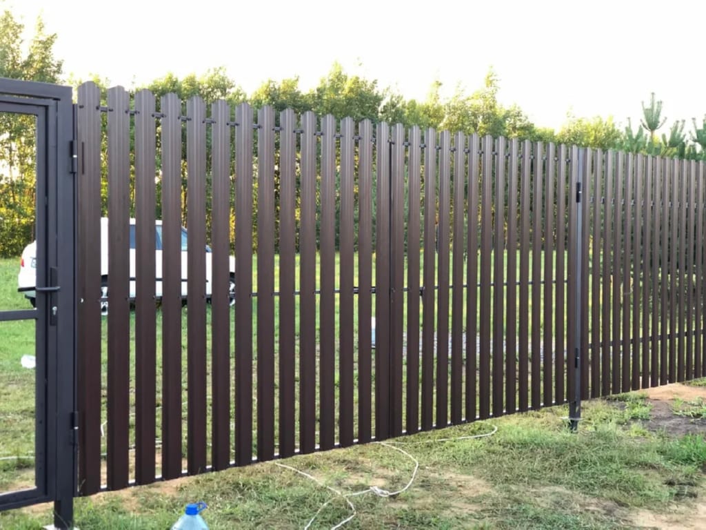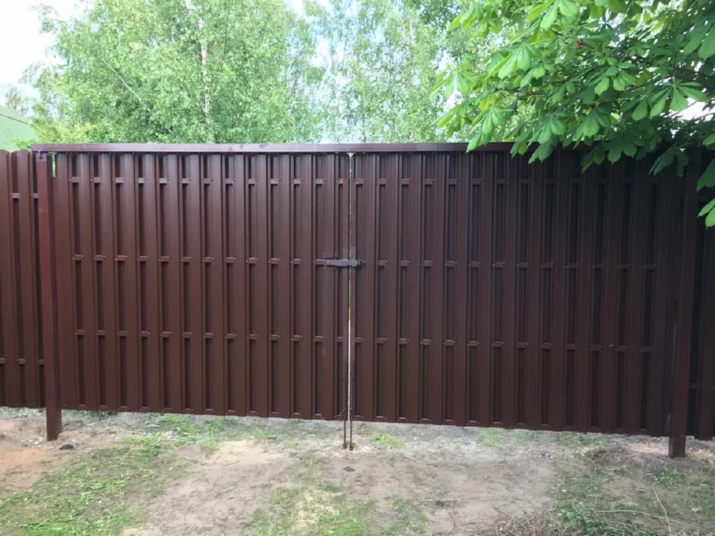 Ворота из евроштакетника распашные пример 6