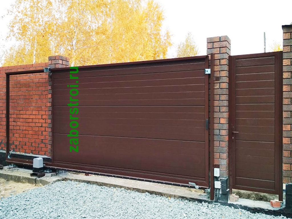Ворота распашные изготавливаются на жёстком каркасе из металлического профиля 60 на 40 с возможностью подключения автоматики для управления дистанционно через пульт. Обычно хватает ширины для въезда от 3 до 4 метра.