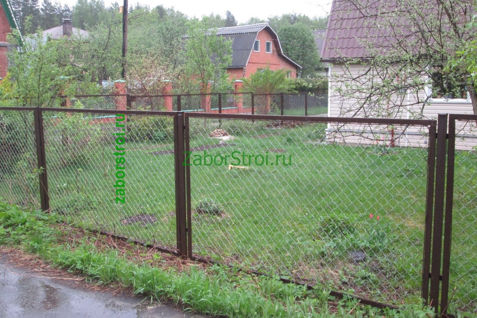 Заборы из сетки рабица в секциях из профиля 15 соток